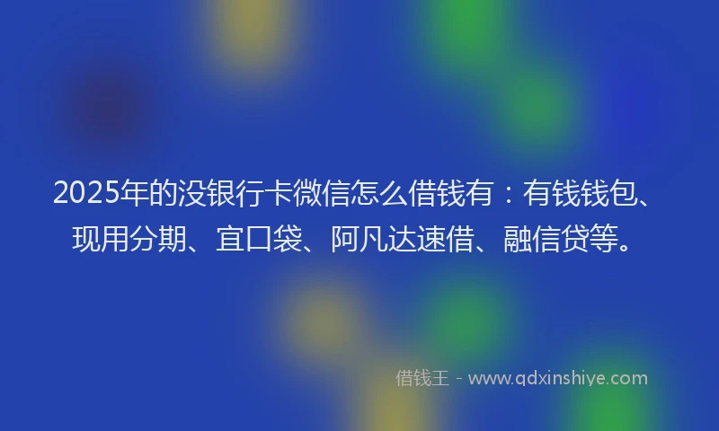 2025年的没银行卡微信怎么借钱有:有钱钱包、现用分期、宜口袋、阿凡达速借、融信贷等。