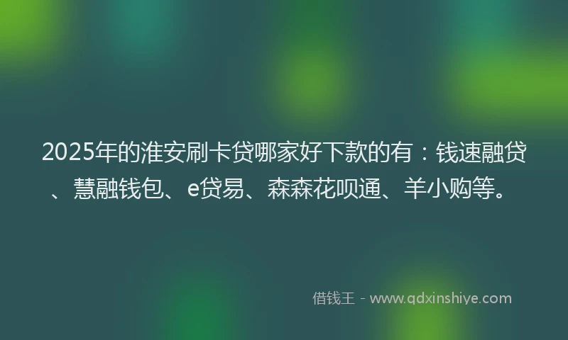 2025年的淮安刷卡贷哪家好下款的有:钱速融贷、慧融钱包、e贷易、森森花呗通、羊小购等。