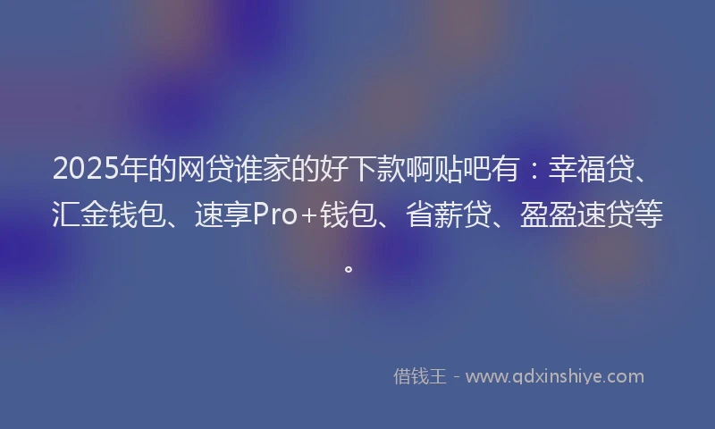 2025年的网贷谁家的好下款啊贴吧有:幸福贷、汇金钱包、速享Pro+钱包、省薪贷、盈盈速贷等。