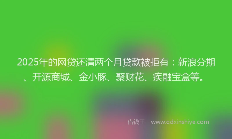 2025年的网贷还清两个月贷款被拒有:新浪分期、开源商城、金小豚、聚财花、疾融宝盒等。
