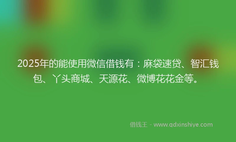 2025年的能使用微信借钱有:麻袋速贷、智汇钱包、丫头商城、天源花、微博花花金等。