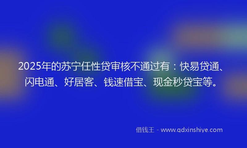 2025年的苏宁任性贷审核不通过有:快易贷通、闪电通、好居客、钱速借宝、现金秒贷宝等。