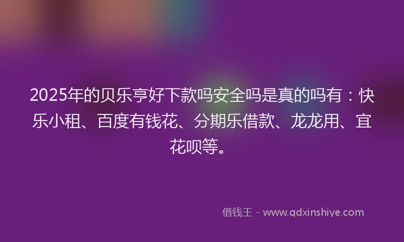 2025年的贝乐亨好下款吗安全吗是真的吗有:快乐小租、百度有钱花、分期乐借款、龙龙用、宜花呗等。