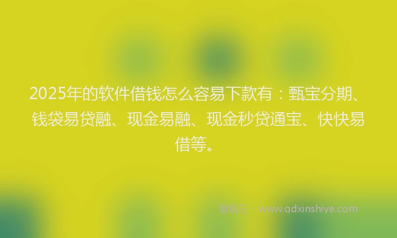2025年的软件借钱怎么容易下款有:甄宝分期、钱袋易贷融、现金易融、现金秒贷通宝、快快易借等。