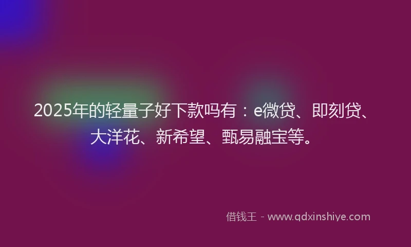 2025年的轻量子好下款吗有:e微贷、即刻贷、大洋花、新希望、甄易融宝等。