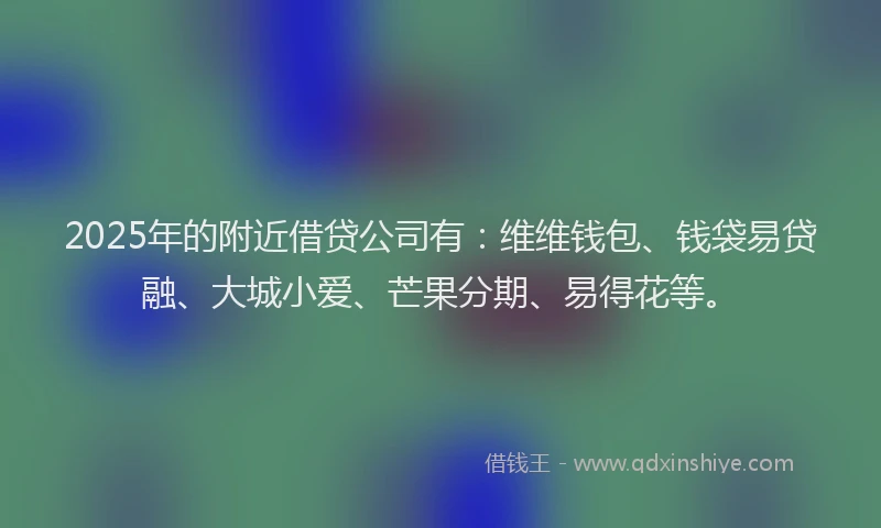 2025年的附近借贷公司有:维维钱包、钱袋易贷融、大城小爱、芒果分期、易得花等。