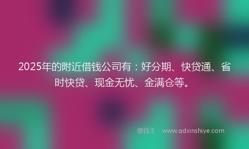 2025年的附近借钱公司有:好分期、快贷通、省时快贷、现金无忧、金满仓等。
