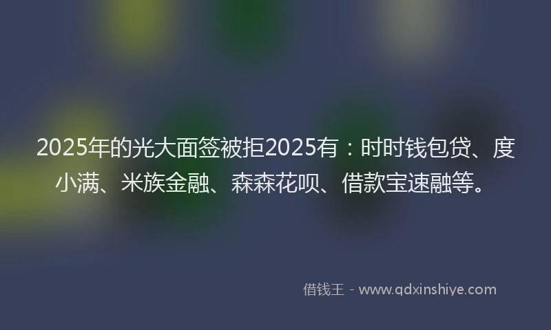 2025年的光大面签被拒2025有:时时钱包贷、度小满、米族金融、森森花呗、借款宝速融等。
