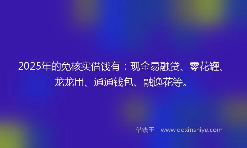 2025年的免核实借钱有:现金易融贷、零花罐、龙龙用、通通钱包、融逸花等。