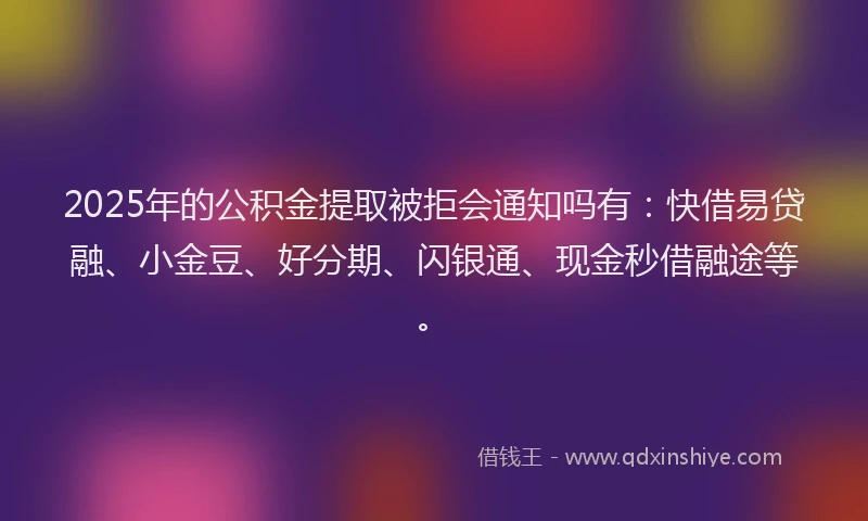 2025年的公积金提取被拒会通知吗有:快借易贷融、小金豆、好分期、闪银通、现金秒借融途等。