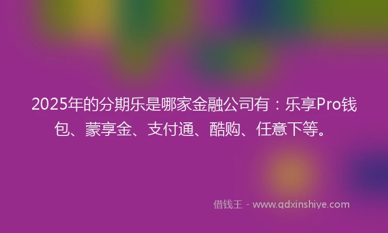 2025年的分期乐是哪家金融公司有:乐享Pro钱包、蒙享金、支付通、酷购、任意下等。