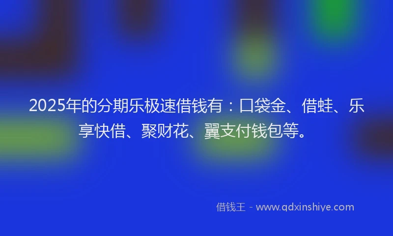 2025年的分期乐极速借钱有:口袋金、借蛙、乐享快借、聚财花、翼支付钱包等。