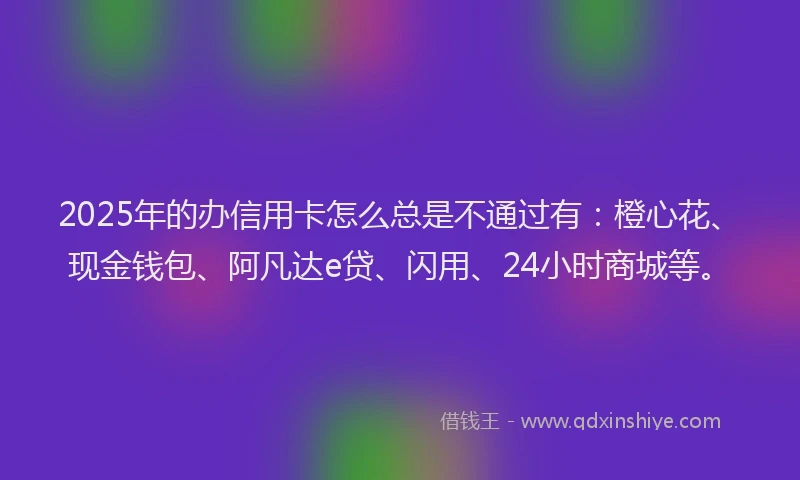 2025年的办信用卡怎么总是不通过有:橙心花、现金钱包、阿凡达e贷、闪用、24小时商城等。