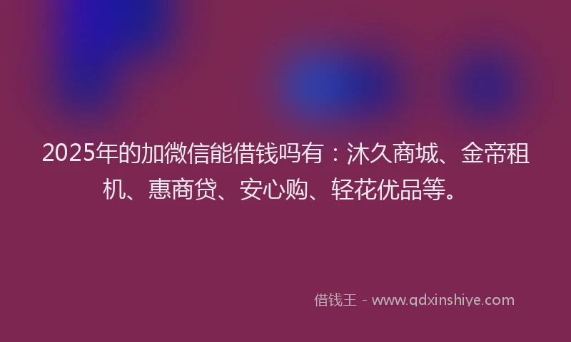 2025年的加微信能借钱吗有:沐久商城、金帝租机、惠商贷、安心购、轻花优品等。
