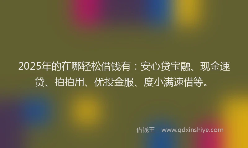 2025年的在哪轻松借钱有:安心贷宝融、现金速贷、拍拍用、优投金服、度小满速借等。