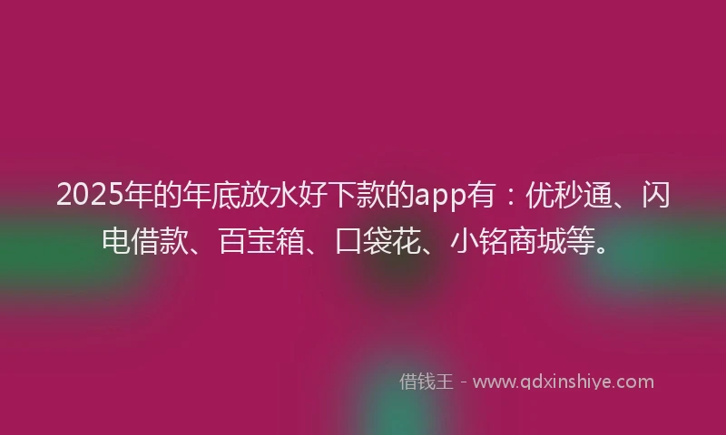 2025年的年底放水好下款的app有:优秒通、闪电借款、百宝箱、口袋花、小铭商城等。