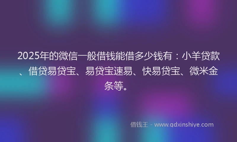 2025年的微信一般借钱能借多少钱有:小羊贷款、借贷易贷宝、易贷宝速易、快易贷宝、微米金条等。