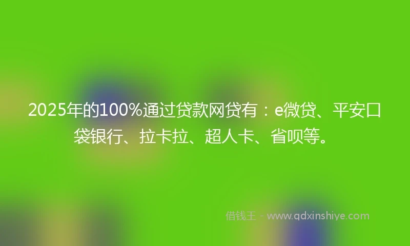 2025年的100%通过贷款网贷有:e微贷、平安口袋银行、拉卡拉、超人卡、省呗等。