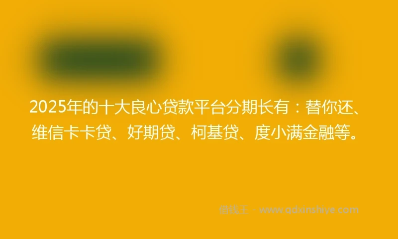 2025年的十大良心贷款平台分期长有:替你还、维信卡卡贷、好期贷、柯基贷、度小满金融等。