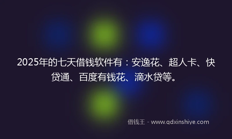 2025年的七天借钱软件有:安逸花、超人卡、快贷通、百度有钱花、滴水贷等。