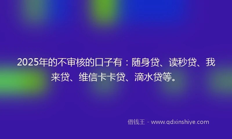 2025年的不审核的口子有:随身贷、读秒贷、我来贷、维信卡卡贷、滴水贷等。