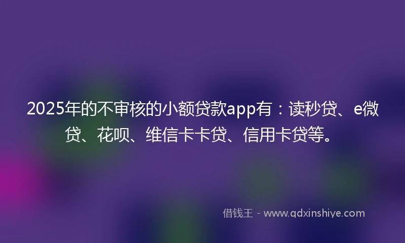 2025年的不审核的小额贷款app有:读秒贷、e微贷、花呗、维信卡卡贷、信用卡贷等。