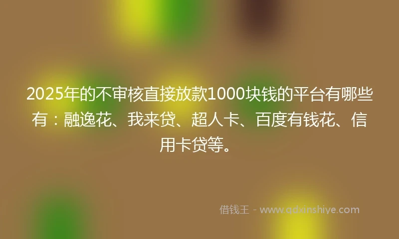 2025年的不审核直接放款1000块钱的平台有哪些有:融逸花、我来贷、超人卡、百度有钱花、信用卡贷等。