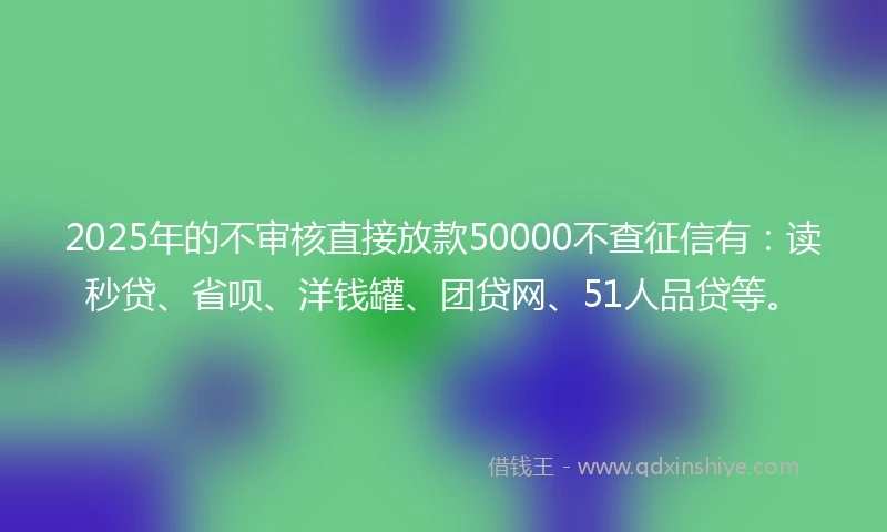 2025年的不审核直接放款50000不查征信有:读秒贷、省呗、洋钱罐、团贷网、51人品贷等。