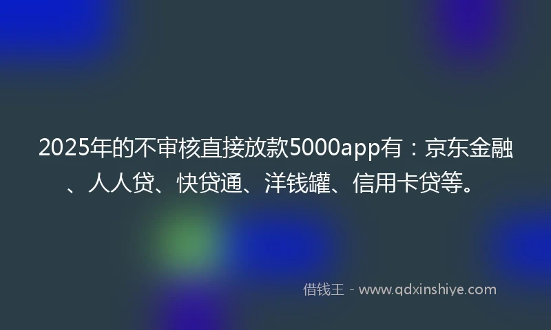 2025年的不审核直接放款5000app有:京东金融、人人贷、快贷通、洋钱罐、信用卡贷等。