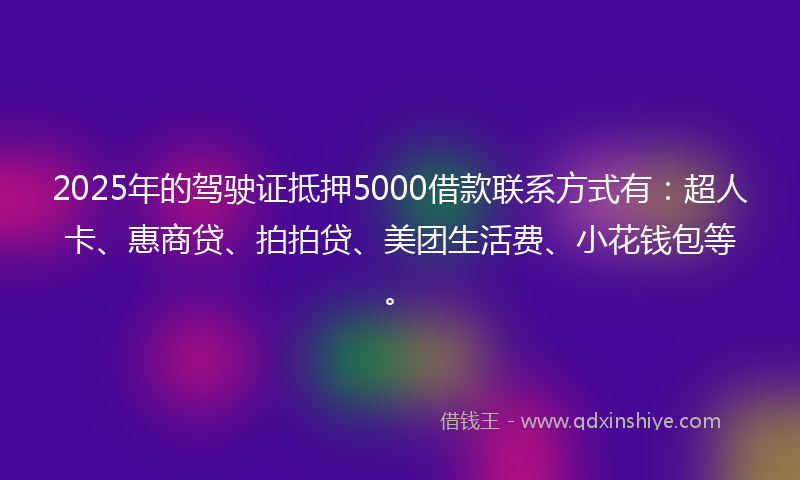 2025年的驾驶证抵押5000借款联系方式有:超人卡、惠商贷、拍拍贷、美团生活费、小花钱包等。