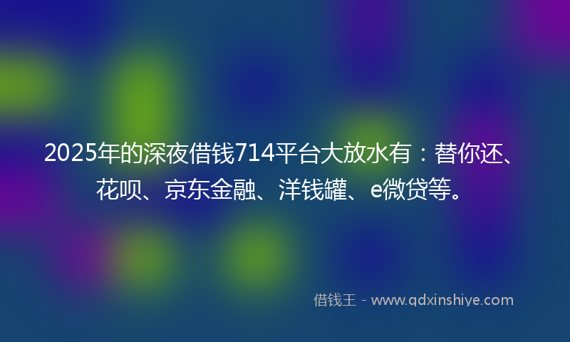 2025年的深夜借钱714平台大放水有:替你还、花呗、京东金融、洋钱罐、e微贷等。