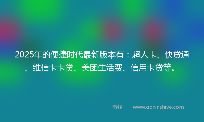 2025年的便捷时代最新版本有:超人卡、快贷通、维信卡卡贷、美团生活费、信用卡贷等。