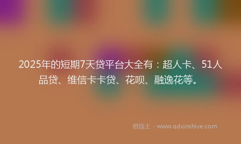 2025年的短期7天贷平台大全有:超人卡、51人品贷、维信卡卡贷、花呗、融逸花等。