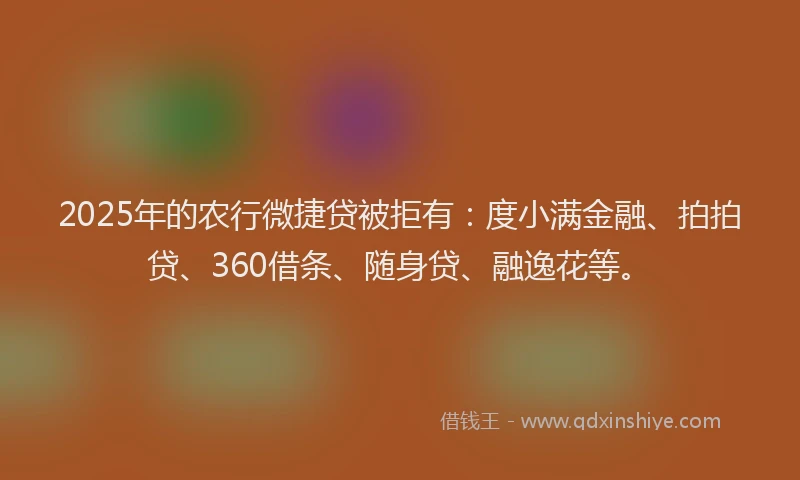 2025年的农行微捷贷被拒有:度小满金融、拍拍贷、360借条、随身贷、融逸花等。