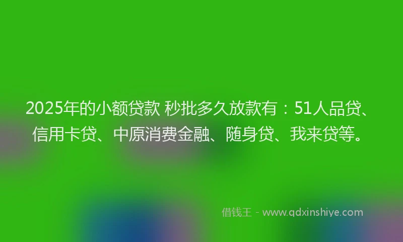 2025年的小额贷款 秒批多久放款有:51人品贷、信用卡贷、中原消费金融、随身贷、我来贷等。