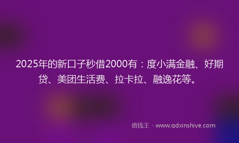 2025年的新口子秒借2000有:度小满金融、好期贷、美团生活费、拉卡拉、融逸花等。