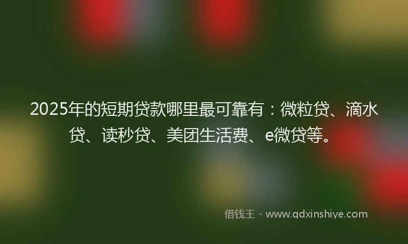 2025年的短期贷款哪里最可靠有:微粒贷、滴水贷、读秒贷、美团生活费、e微贷等。