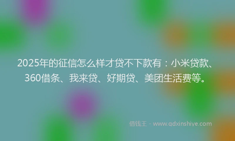 2025年的征信怎么样才贷不下款有:小米贷款、360借条、我来贷、好期贷、美团生活费等。