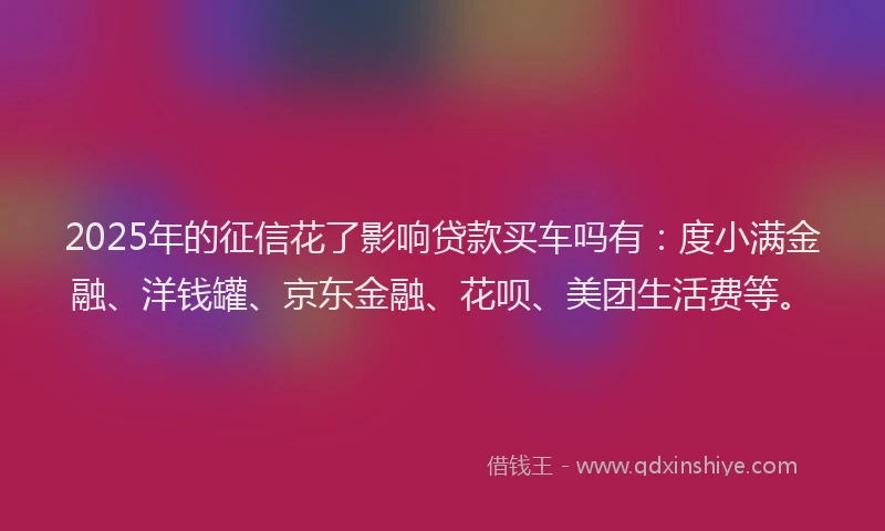2025年的征信花了影响贷款买车吗有:度小满金融、洋钱罐、京东金融、花呗、美团生活费等。