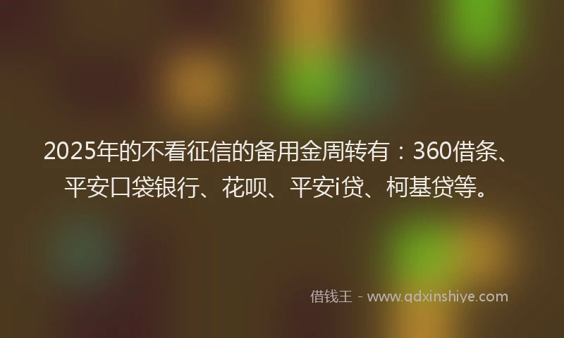 2025年的不看征信的备用金周转有:360借条、平安口袋银行、花呗、平安i贷、柯基贷等。