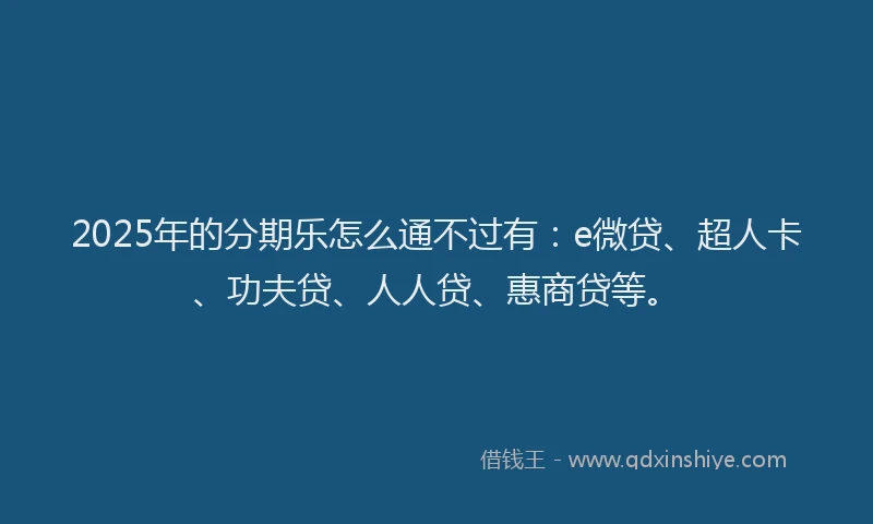 2025年的分期乐怎么通不过有:e微贷、超人卡、功夫贷、人人贷、惠商贷等。