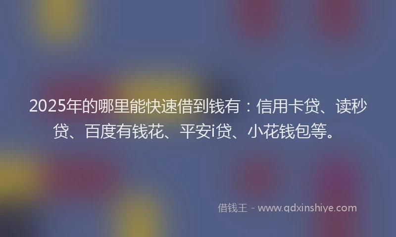 2025年的哪里能快速借到钱有:信用卡贷、读秒贷、百度有钱花、平安i贷、小花钱包等。