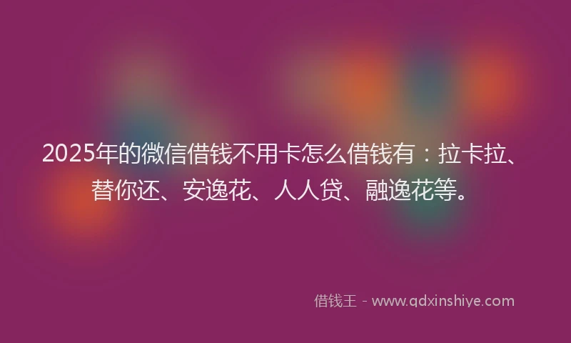 2025年的微信借钱不用卡怎么借钱有:拉卡拉、替你还、安逸花、人人贷、融逸花等。