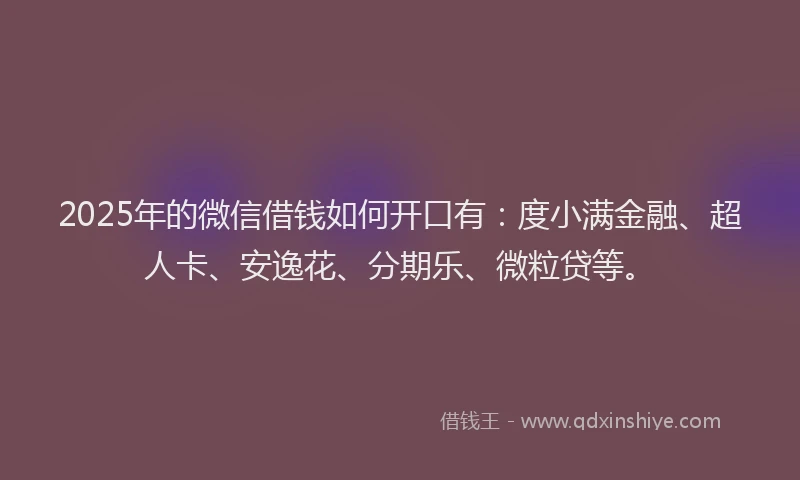 2025年的微信借钱如何开口有:度小满金融、超人卡、安逸花、分期乐、微粒贷等。