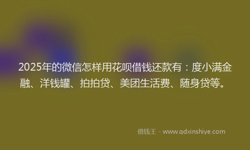 2025年的微信怎样用花呗借钱还款有:度小满金融、洋钱罐、拍拍贷、美团生活费、随身贷等。