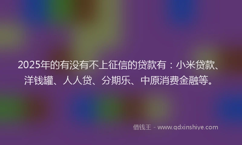 2025年的有没有不上征信的贷款有:小米贷款、洋钱罐、人人贷、分期乐、中原消费金融等。