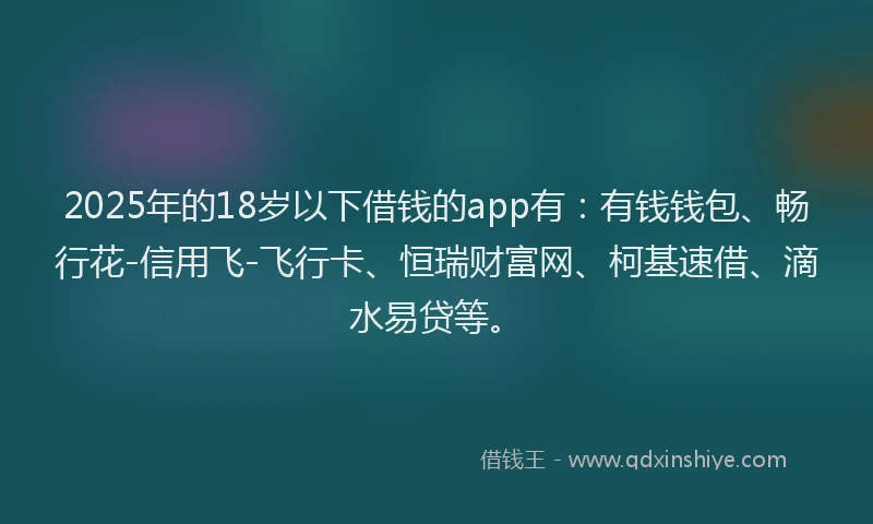 2025年的18岁以下借钱的app有:有钱钱包、畅行花-信用飞-飞行卡、恒瑞财富网、柯基速借、滴水易贷等。