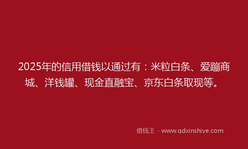 2025年的信用借钱以通过有:米粒白条、爱蹦商城、洋钱罐、现金直融宝、京东白条取现等。