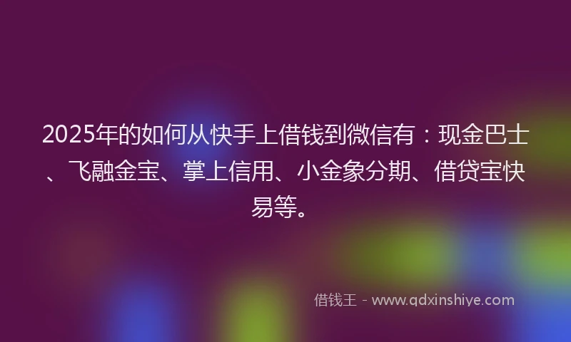 2025年的如何从快手上借钱到微信有:现金巴士、飞融金宝、掌上信用、小金象分期、借贷宝快易等。