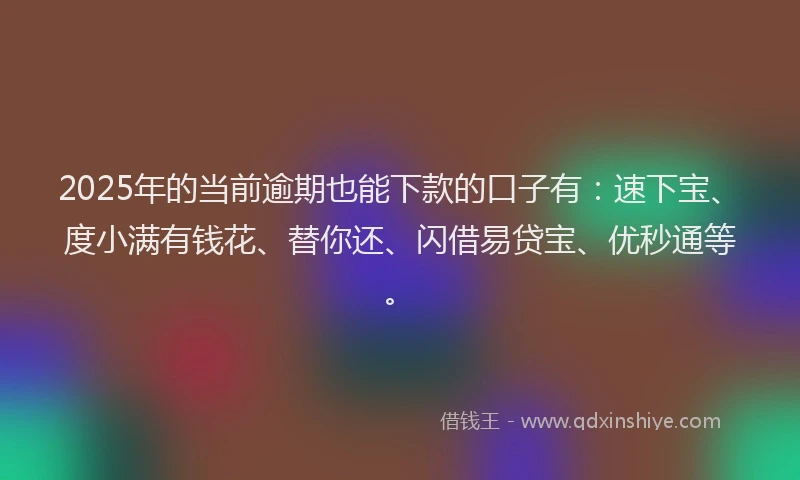 2025年的当前逾期也能下款的口子有:速下宝、度小满有钱花、替你还、闪借易贷宝、优秒通等。